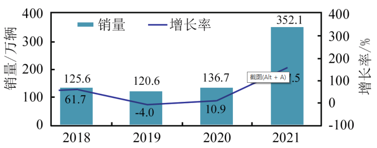 圖2 近年中國(guó)新能源汽車(chē)銷(xiāo)量及增長(zhǎng)率