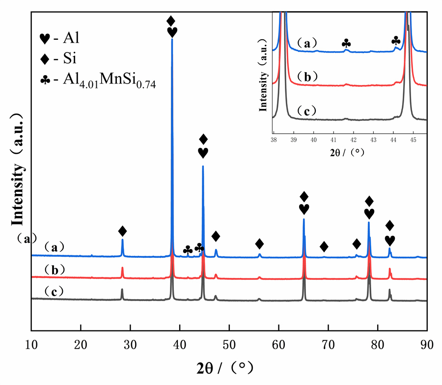 圖4 不同狀態(tài)下AlSi7CuMnMg合金的X射線衍射圖譜