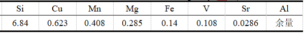 表1 AlSi7CuMnMg合金主要元素含量(質(zhì)量分?jǐn)?shù),%)