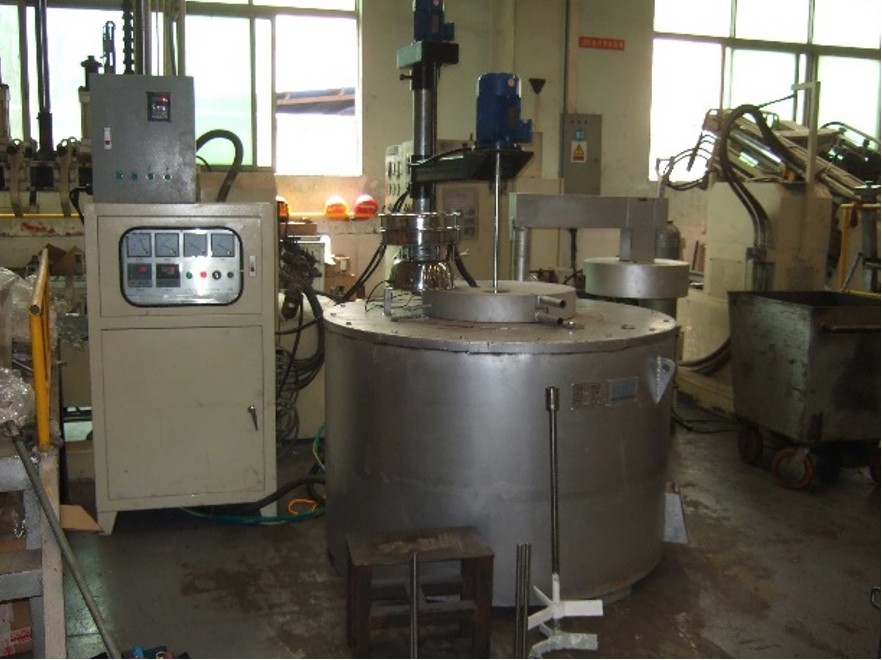 圖1 A356-B4C復(fù)合材料壓鑄成形設(shè)備 基于流體力學(xué)理論和DPM模型,構(gòu)建PAMCs壓鑄充型過(guò)程的多相流數(shù)值模擬模型。在模型中,A356鋁液作為連續(xù)相而B(niǎo)4C顆粒作為分散相處理,描述顆粒運(yùn)動(dòng)方程如下:
