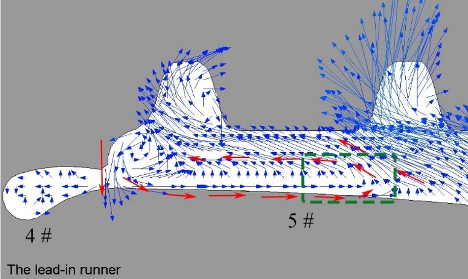 (c)實(shí)際壓鑄溢流槽2 (d)模擬溢流槽2