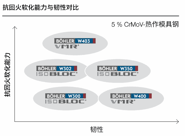 對于無法做成鑲塊的情況,模具鋼材選擇需要考慮高溫強度,例如Bohler W403VMR,W403VMR采用真空電弧重熔,保證高合金當量材料的韌性,緩解沖蝕問題同時規避次生風險的發生。