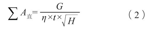 式中:∑A直為直澆道最狹窄處總截面積,cm²;η為系數,通常取0.04~0.07;H 為平均壓頭,cm,其計算公式見式(3)。