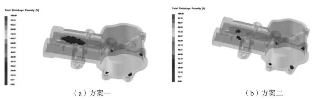 圖12 工藝優(yōu)化成形后的鑄件的縮松、縮孔分布