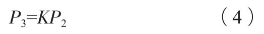 式中:μ2 為充型的阻力系數(shù),在充型階段由于型腔較為復雜,所以升液阻力要大一點,所以本文取1.5;h2 為型腔高度,為0.195 mm。所以充型壓力P2 為11 020 Pa,根據(jù)2.2.1節(jié)充型時間為9.5 s。 增壓階段主要為充型階段結束后,需要向液面繼續(xù)增大壓力,使型腔內(nèi)液體在壓力作用下繼續(xù)補縮和結晶,但是壓力不能過大,增壓壓力為: