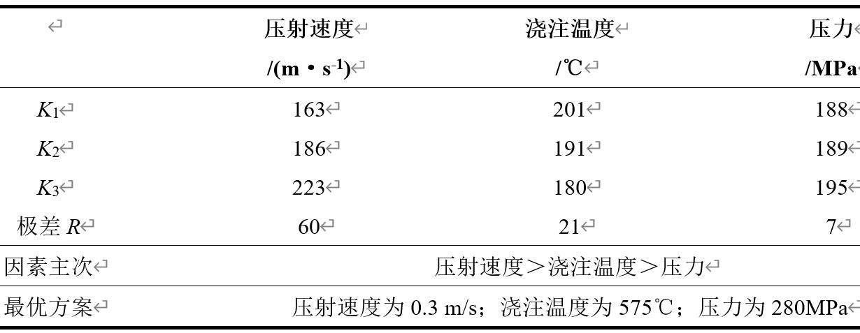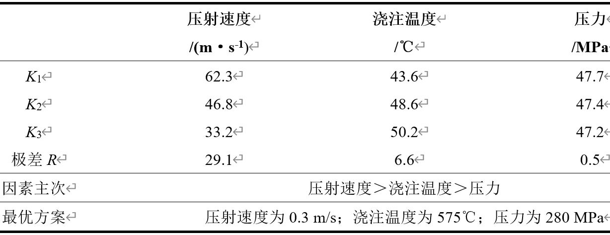 表3 Al-Si-Mg鋁合金半固態構件正交試驗方案與結果