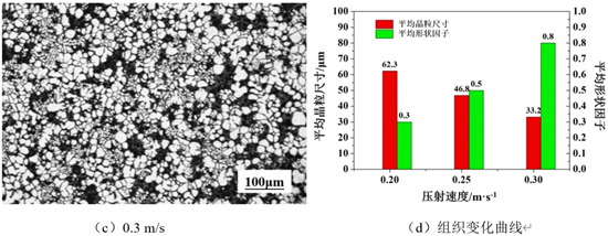 圖4 不同壓射速度下流變擠壓鑄造Al-Si-Mg鋁合金的本體金相組織及其變化曲線