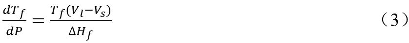 一方面,根據熱力學理論,壓力的變化會導致合金平衡凝固溫度的變化,兩者之間的函數關系滿足Clausius-Clapeyron方程: