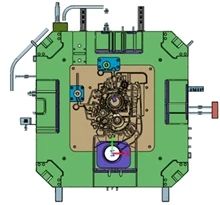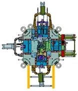 ![]() 原標(biāo)題:離合器殼體壓鑄工藝分析及缺陷改善 摘 要:國產(chǎn)新一代CVT變速箱燃油經(jīng)濟(jì)性、動力性、舒適性好,成本低,但是集成結(jié)構(gòu)的復(fù)雜化,功能的多樣化給離合器殼體的制造帶來了極大的挑戰(zhàn)。通過應(yīng)用并完善高壓點(diǎn)冷型芯針設(shè)計,可以有效地提高熱節(jié)的冷卻效果,延長針的使用壽命;通過改進(jìn)毛坯形狀設(shè)計,增加擠壓銷的直徑,可以有效解決厚大位置內(nèi)部縮松、縮孔缺陷,保證產(chǎn)品的內(nèi)部質(zhì)量和氣密性。 前 言:國產(chǎn)新一代CVT變速箱可獲得傳動系統(tǒng)與發(fā)動機(jī)工況的最佳匹配,但是變速箱結(jié)構(gòu)復(fù)雜,壁厚變化大,內(nèi)部品質(zhì)、表面品質(zhì)、加工尺寸精度、氣密性要求高,導(dǎo)致產(chǎn)品制造困難,廢品率高,需要對壓鑄工藝進(jìn)行研究和改進(jìn)。 我司生產(chǎn)的離合器殼體,材質(zhì)是ADC12合金,輪廓尺寸是545 mm×430 mm×230 mm,一般壁厚是3.5 mm,產(chǎn)品質(zhì)量是10.47 kg。該產(chǎn)品峰值年產(chǎn)量為20萬件,內(nèi)部質(zhì)量要求優(yōu)于ASTM E 505 2級標(biāo)準(zhǔn),外觀質(zhì)量要求裝配及密封位置加工后氣孔直徑小于0.4 mm,間隔大于8 mm,數(shù)量小于3個;外觀質(zhì)量要求毛坯表面不允許有鑄點(diǎn)、冷隔、裂紋、飛邊、毛刺等缺陷;氣密性要求高壓油道在300 kPa的壓力下,泄漏量小于3 mL/min。 通過對離合器殼體的壓鑄工藝設(shè)計、壓鑄缺陷的原因分析和工藝改進(jìn),提出類似產(chǎn)品的典型壓鑄缺陷問題解決方法。 1、壓鑄工藝設(shè)計 1.1 壓鑄機(jī)型選擇 壓鑄時,為了保證鑄件尺寸精度和內(nèi)部質(zhì)量,防止壓鑄過程飛料,必須鎖緊分型面。因此選擇關(guān)鍵是壓鑄機(jī)鎖模力大小的計算。 鑄造總投影面積: A鑄造投影面積=A產(chǎn)品+A澆道+A溢流槽=3 229 c㎡ F鎖≥安全系數(shù)×壓射比壓×A鑄造投影面積=1.1×75×3229=2 6640 kN 根據(jù)鎖模力計算結(jié)果和公司壓鑄機(jī)臺資源,選擇IDRA的27 000 kN壓鑄機(jī)。 1.2 壓鑄模具設(shè)計 內(nèi)澆口設(shè)計應(yīng)該使鋁液的充型距離盡可能的短,以減少鋁液溫度的降低;澆口位置應(yīng)該使鋁液到達(dá)型腔各處位置距離相等,實(shí)現(xiàn)遠(yuǎn)離部位同時充填和凝固;應(yīng)該設(shè)置在壓鑄件厚壁處,實(shí)現(xiàn)順序填充、壓力補(bǔ)縮。根據(jù)該產(chǎn)品的結(jié)構(gòu)特點(diǎn),兩個大的軸承孔內(nèi)部、高壓油道內(nèi)部質(zhì)量要求高,根據(jù)金屬液填充流向的需要,澆注系統(tǒng)采用梳形設(shè)計,澆口厚度為4 mm,位于產(chǎn)品壁厚5 mm分型線位置,設(shè)置在定模面上。澆注系統(tǒng)設(shè)計見圖1,模具設(shè)計見圖2和圖3。