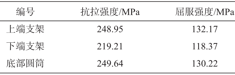 圖11 差速器殼體壓鑄實物圖和X射線探傷 對差速器殼體鑄件支架上端、支架下端以及底部圓筒處進行力學性能測試,如表7所示。從表中可以得出,不同位置的力學性能存在差異,但是遵循近澆道試樣力學性能優(yōu)于遠澆道試樣力學性能、壁薄處試樣力學性能優(yōu)于壁厚處試樣力學性能的規(guī)律。在鑄件成形過程中,隨著擠壓力逐漸增大,會導致初生晶粒尺寸減小,從而使鑄件的力學性能顯著提高,由上文的流場分析可知,試樣上端支架與底部圓筒處于近澆道處,壓力處于較高水平,力學性能較好,而下端支架位于遠澆道處,壓力在傳遞過程中會有損耗,處于較低水平,力學性能較差,但差速器殼體鑄件的整體力學性能較好,符合生產(chǎn)要求。