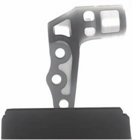 圖6 半固態支臂凝固過程數值模擬結果 從圖5可以看出,半固態金屬充型順暢平穩,沒有飛濺。 從圖6可以看出,支臂能夠實現順序凝固,支臂形成縮松的可能性很小。 3.3 半固態壓鑄鋁合金支臂樣件 半固態壓鑄鋁合金材料為A319鋁合金,半固態支臂鑄件如圖7所示,外形尺寸190 mm×150 mm×110 mm,薄處壁厚10 mm,厚處壁厚33 mm。從圖7可以看出,鑄件外觀質量好,沒有褶皺。