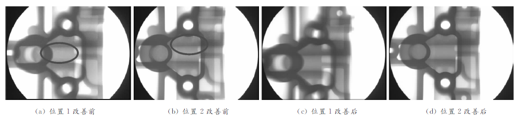 圖8 改善前后機濾安裝面附近的X檢驗對比圖片 作者