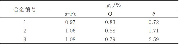 表2 高真空壓鑄Al-10Si-0.5Mn-0.4Mg-xCu合金鑄態(tài)金屬間化合物面積分?jǐn)?shù)統(tǒng)計(jì)結(jié)果
