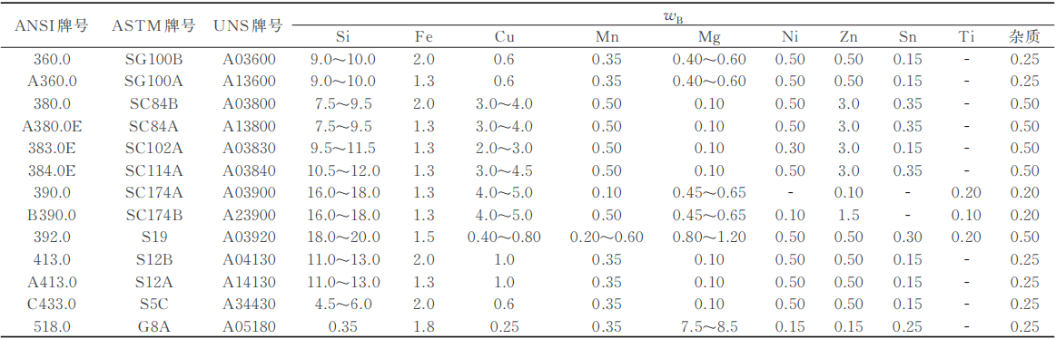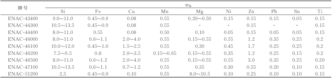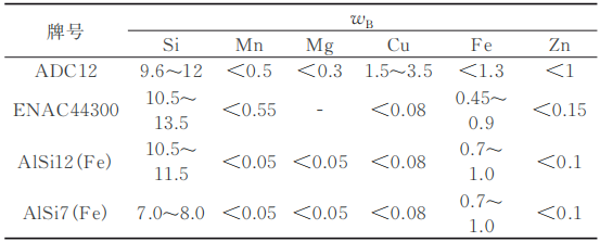 表2 歐盟壓鑄鋁合金化學(xué)成分(%)