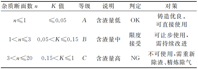 表5 K值標準對照表 試樣在半凝固狀態(tài)下放入密閉的空間, 然后對其進行抽真空, 待試樣在真空容器內(nèi)完全凝固, 得到的試樣通過觀察外觀, 對比標樣得出Al液中的含氫量。試驗時, 取少量Al液倒入經(jīng)預熱的坩堝內(nèi), 立即 (小于10s) 放入密封的真空室內(nèi), 然后打開測氫儀真空泵, 真空室形成真空狀態(tài)。