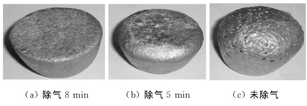 圖7 不同精煉除氣時間下真空試樣外觀對比效果圖