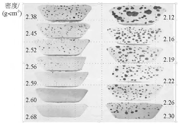 圖3 不同密度鋁合金試樣的比較(g·cm-3)