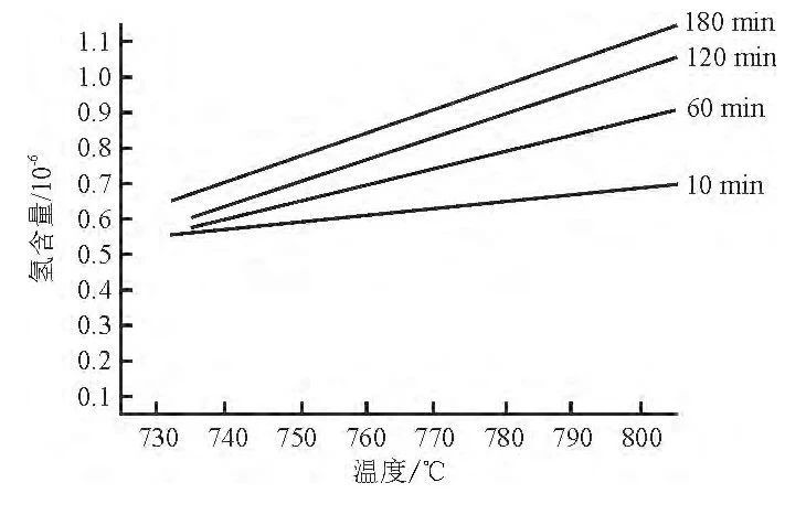 圖1 Al液中氫含量與熔煉溫度和放置時間的關系