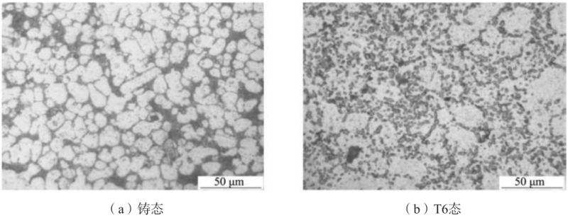 圖8 前叉壓鑄件X射線探傷圖 另外將高速位置3所生產(chǎn)的鑄件進(jìn)行525 ℃+4 h固溶處理和170 ℃+2 h時效處理,其表面沒有發(fā)現(xiàn)鼓泡現(xiàn)象。通過在前叉鑄件本體取樣進(jìn)行了力學(xué)性能測試,鑄態(tài)的抗拉強(qiáng)度260 MPa,屈服強(qiáng)度169 MPa,伸長率為2.2%,T6處理后強(qiáng)度和韌性都得到了較大的提升,即抗拉強(qiáng)度提高到342 MPa,屈服強(qiáng)度為222 MPa,伸長率為3.6%。鑄件的組織如圖9所示,從圖中可以看出,鑄態(tài)組織中α-Al相呈顆粒狀或近球狀,經(jīng)過T6處理后,硅相呈顆粒狀或短棒狀,同時有Al2Cu和Mg2Si等顆粒增強(qiáng)相析出,在組織分布也較為均勻,從而使得鑄件性能得到進(jìn)一步的強(qiáng)化。最后前叉壓鑄件經(jīng)實(shí)際裝車經(jīng)20萬次疲勞沖擊強(qiáng)度測試沒有斷裂或變形,符合電動滑板車產(chǎn)品的前叉零件技術(shù)要求。此件由2021年至2023年生產(chǎn),已生產(chǎn)近4萬臺套。最后一批交貨的鑄件經(jīng)超115萬次負(fù)載疲勞實(shí)驗(yàn)(圖10),鑄件仍未發(fā)生斷裂,遠(yuǎn)超前叉零件技術(shù)要求。