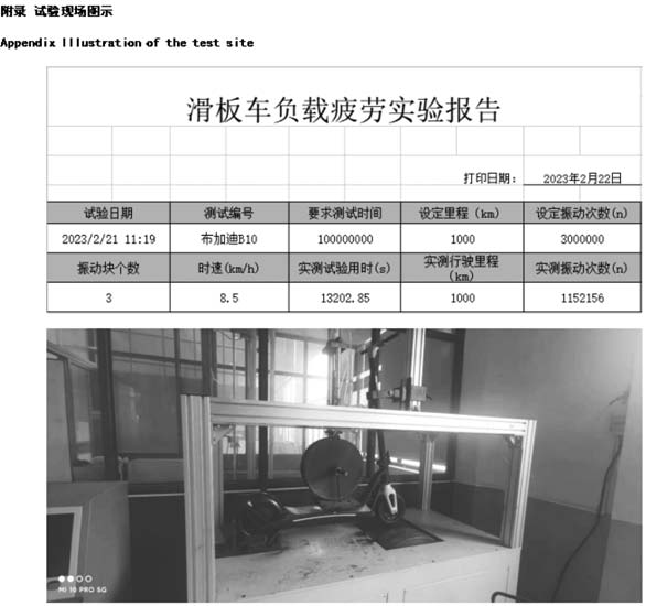 圖10 前叉裝配負(fù)載疲勞測試報告 4 結(jié)論 (1)基于智鑄超云—壓鑄CAE云計算平臺,對不同壓射工藝方案進(jìn)行壓射過程的模擬分析,結(jié)果表明,采用高速位置3進(jìn)行壓射時,合金液進(jìn)入型腔后,流動平穩(wěn),由于高速位置前移到了零件型腔中,避免了在鑄件圓柱孔末端位置產(chǎn)生大的噴射流,從而可消除該處的卷氣現(xiàn)象。 (2)壓鑄生產(chǎn)工藝為鋁液澆注溫度為660 ℃,低速壓射采用勻加速壓射工藝,其最高臨界速度為0.57 m/s,高速速度為4 m/s,模具溫度控制在200 ℃左右,起高速在高速位置3,獲得了外形輪廓清晰、表面光滑、尺寸精度高、無缺陷的前叉壓鑄件。 (3)前叉壓鑄件鑄態(tài)的抗拉強(qiáng)度260 MPa,屈服強(qiáng)度169 MPa,伸長率為2.2%;T6處理后抗拉強(qiáng)度提高到342 MPa,屈服強(qiáng)度為222 MPa,伸長率為3.6%,滿足了電動滑板車產(chǎn)品的前叉零件技術(shù)要求。 (4)前叉壓鑄件的密度達(dá)到2.739 g/cm³,孔隙率為0.39‰,壓鑄件的孔隙率遠(yuǎn)小于2%的壓鑄件標(biāo)準(zhǔn),同時也說明壓鑄件的含氣量很低,實(shí)現(xiàn)了壓鑄件的低含氣量成形。