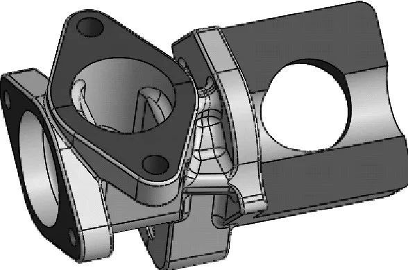 圖11 鑄件實物圖 通過閥體結構分析,設計了兩種壓鑄工藝并進行數值模擬。結果顯示,鑄件在厚壁區域處產生縮孔缺陷,金屬液先填充厚壁區域的工藝產生的縮孔缺陷較多,產生縮孔缺陷的原因是鑄件厚壁區域凝固速率較慢,部分區域因得不到金屬液的補縮而被孤立。通過增加厚壁處冷卻系統對工藝進行優化,結果表明優化后鑄件無縮孔缺陷并得到了生產驗證,滿足技術要求。 作者