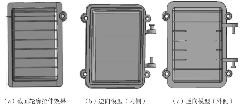 圖4 領域劃分和截面草圖 建立零件草圖后,通過拉伸和回轉等命令生成實體(圖5a),再將生成的實體做細節修整,得到與原型輪廓一致的零件模型,見圖5b。