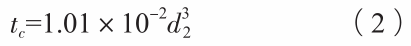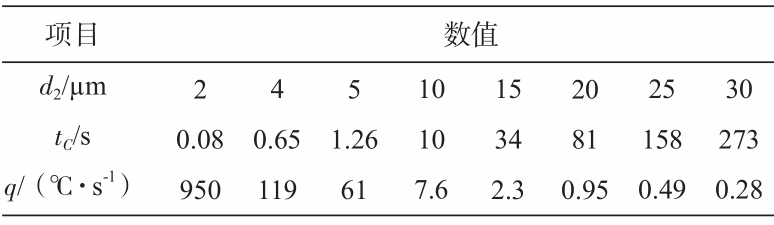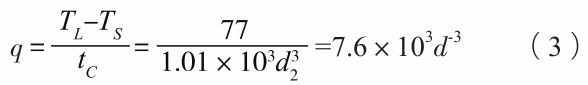 式中:tC的單位為s,d2的單位為μm。令合金在凝固期間的平均冷卻速度為q,則tc=(TL-TS)/q,帶入式(2),可得到: