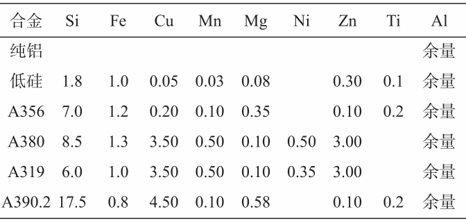 表1 本試驗選用合金的化學成分 wB/%