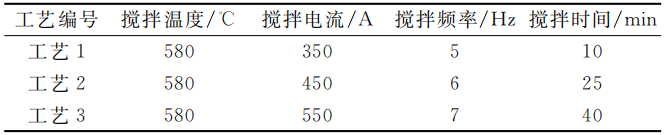 表1 不同的電磁攪拌工藝參數(shù)