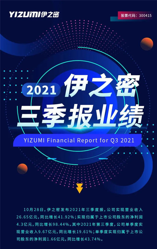 2021三季度報(bào)出爐:伊之密營(yíng)收同比增長(zhǎng)41.92%