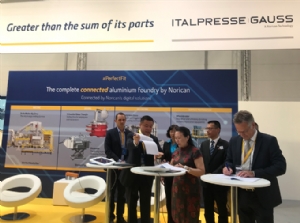 德國時間6月26日,在2019德國GIFA諾瑞肯集團展臺,中國濟南慧成鑄造有限公司與諾瑞肯集團簽訂設備購買協議,此次購買的3臺壓鑄機設備。