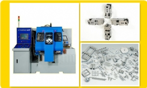 T-SOK碩為企業有限公司在2014歐洲壓鑄工業展上,展示其適用于高精度、大批量、小體積、結構復雜的壓鑄件生產的多軸式壓鑄技術,即分模面射料技術,其展示的產品包含Angelcast多...