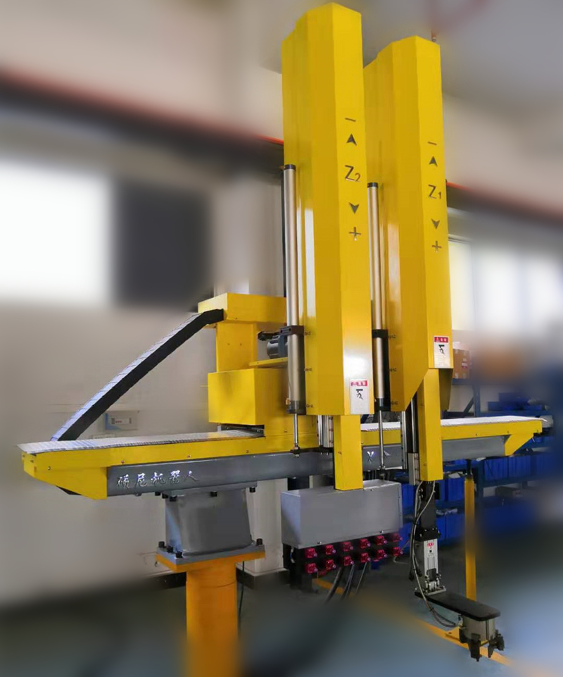 碩尼SN2大型雙臂線(xiàn)性機(jī)器人 目前,碩尼智能公司已成功開(kāi)三個(gè)系列多款型號(hào)的壓鑄線(xiàn)性機(jī)器人產(chǎn)品,包括:SN1取件噴霧一體機(jī)器人系列,多款應(yīng)用于400-900T中型壓鑄生產(chǎn)單元;SN2雙臂取件噴霧一體機(jī)器人系列,應(yīng)用于1000-3000T大型壓鑄單元;公司調(diào)研全國(guó)市場(chǎng)需求,推出一款精益型一體機(jī)器人,專(zhuān)為中小型壓鑄機(jī)開(kāi)發(fā)研制,用于180-300T,該款相比于傳統(tǒng)三手,不管在價(jià)格、效率、節(jié)能、環(huán)保、安全等方面都有很大的優(yōu)勢(shì)。公司目前月產(chǎn)能可達(dá)100多套 。 相比于傳統(tǒng)的噴霧、取件機(jī)械手,或者關(guān)節(jié)機(jī)器人噴霧取件,壓鑄線(xiàn)性機(jī)器人擁有更多優(yōu)勢(shì),單機(jī)兼具噴霧、取件雙功能,效率更高,協(xié)調(diào)性更佳,并且可以集成機(jī)器人與給湯機(jī)同一電箱。安裝不占用空間,噴霧、取件無(wú)需打開(kāi)安全門(mén),更加安全;不僅可進(jìn)行噴霧、取件,還可執(zhí)行鑲嵌、切邊、碼垛等工序。另外。與關(guān)節(jié)機(jī)器人投資成本相比,性?xún)r(jià)比高。