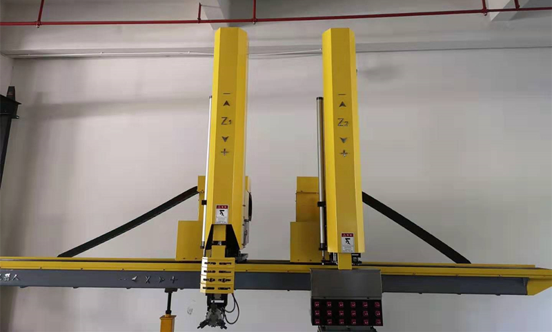 碩尼智能工廠(chǎng)裝配區(qū) 據(jù)介紹,碩尼智能公司開(kāi)發(fā)的壓鑄線(xiàn)性機(jī)器人,性能更加耐用,高效,節(jié)能,安全的優(yōu)勢(shì),同時(shí)具有速度快,位置精準(zhǔn)的優(yōu)勢(shì),標(biāo)準(zhǔn)機(jī)速度移動(dòng)速度可達(dá)到2.5m/s,位置精準(zhǔn)可控制在±0.05mm;中文版人機(jī)觸摸屏,手持式控制器,機(jī)臺(tái)狀態(tài)實(shí)時(shí)監(jiān)控和故障自診顯示功能;配置自主設(shè)計(jì)的取件手、防堵噴頭;機(jī)臺(tái)防護(hù)等級(jí)達(dá)IP65,具有很好的防水、防塵、防高溫、防腐蝕等功能。SN1采用四軸伺服控制,SN2采用六軸伺服控制,取件軌跡在上下、左右、前后六個(gè)方位同步運(yùn)行,降低取件難度。