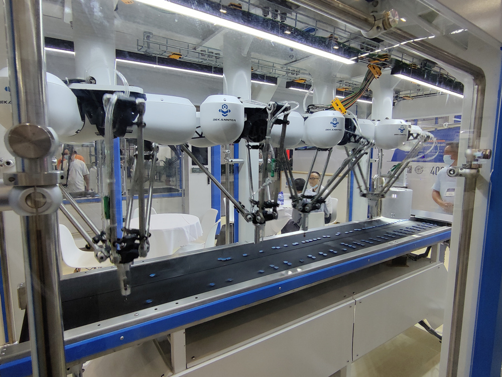 傅儉先生還介紹,并聯(lián)機器人作為工業(yè)機器人行業(yè)的一個細分領域,在一些行業(yè)有著不可替代的作用,比如對衛(wèi)生條件有嚴格要求的食品、醫(yī)療行業(yè)。勃肯特的產品可在無菌環(huán)境下工作,實現自動化、無人化生產,在降低食品藥品安全風險的同時,還能提高生產效率,保證生產質量和食品衛(wèi)生安全。