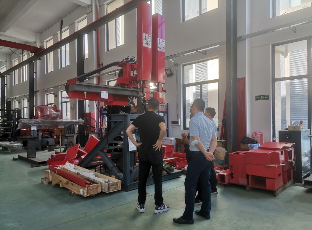 客戶來訪文杰智能考察指導(dǎo) 用公司董事長楊杰先生的話,當(dāng)時(shí),文杰的工程師們,在毫無可借鑒的現(xiàn)成機(jī)和技術(shù)的基礎(chǔ)上,采用逆向工程進(jìn)行產(chǎn)品開發(fā),研制出第一代壓鑄版線性機(jī)器人樣機(jī),后來又通過近兩年的時(shí)間,在用戶工廠進(jìn)行試用,邊試邊改,不斷完善和優(yōu)化,投入近10套的測試機(jī),最終才將技術(shù)成熟的線性機(jī)器人正式推向市場。時(shí)至今日,文杰智能已推出第四代線性機(jī)器人,引領(lǐng)了這一領(lǐng)域發(fā)展和技術(shù)進(jìn)步。 事實(shí)上,自始至終,楊杰先生就看好線性機(jī)器人的市場前景。壓鑄線性機(jī)器人,是一種介于壓鑄機(jī)械手與六軸關(guān)節(jié)機(jī)器人之間的一種高效自動(dòng)化設(shè)備。它兼具了噴霧、取件、切邊、碼垛等多重功能,安裝于壓鑄機(jī)上方,而不占地面空間,適用于無人化智能自動(dòng)化壓鑄島,性價(jià)比大幅提升,操作難度大大降低,助力國內(nèi)中高端壓鑄自動(dòng)化的進(jìn)程。 相比傳統(tǒng)機(jī)械“三手”,線性機(jī)器人噴霧更精準(zhǔn)、效果更佳,更能保護(hù)模具,產(chǎn)品良率更高,脫模劑使用量更少、更環(huán)保,并且具有模具參數(shù)儲存、按需編程等功能。另外,它在性能方面,可與價(jià)格高昂的六軸關(guān)節(jié)機(jī)器人相媲美,更受壓鑄廠青睞,易于普及推廣。