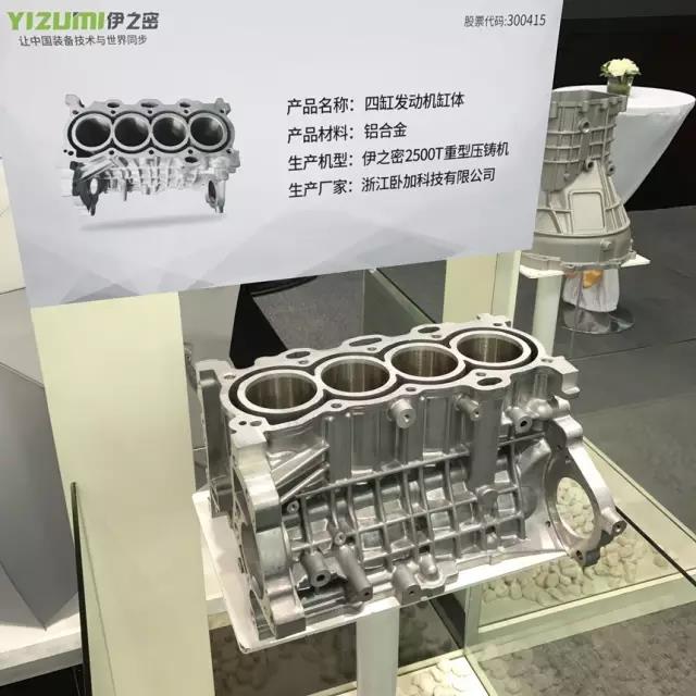浙江臥加是一家主營精密配件的高科技企業,在2014年開始經營汽車配件生產,為吉利汽車供應發動機缸體和缸蓋。僅用2年時間,就實現年產值3億元,占據中國吉利汽車缸體生產的半壁江山。 浙江臥加在2012年開始和伊之密合作,目前已經有7臺伊之密重型壓鑄機在車間生產發動機缸體,其中噸位最大的達到3000T。此次在寧波壓鑄展上,采購的4臺H系列重型機分別為2臺2500T,1臺1650T,1臺1250T,而且均配套伊之密機器人自動化公司的解決方案,包括噴涂、制品取出、制品光電檢測裝置、缸體鑲嵌模塊、制品夾取模塊、鑲嵌取件組合模塊、鑲嵌取件系統周邊等機器人自動化生產系統。
