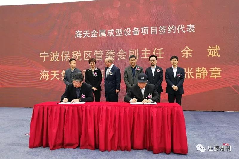 ![]() 簽約儀式 壓鑄周刊(2018年4月14日 寧波)昨日,寧波保稅區(qū)重大項(xiàng)目集中簽約儀式在保稅區(qū)南區(qū)隆重舉行。作為此次簽約的重大項(xiàng)目之一,寧波海天金屬成型設(shè)備項(xiàng)目格外引人關(guān)注。據(jù)悉,該項(xiàng)目由國(guó)際通用加工機(jī)械巨頭海天集團(tuán)投資,計(jì)劃建成年產(chǎn)3000臺(tái)壓鑄機(jī)的產(chǎn)能規(guī)模。 出席簽約儀式的海天集團(tuán)董事長(zhǎng)張靜章先生表示:“我們計(jì)劃總投資1.6億美元(1美元=6.2787元人民幣——本刊注)打造大型壓鑄成型裝備及其核心部件制造基地,主要集中于高精密冷熱室壓鑄機(jī)、金屬注射成型機(jī)、自動(dòng)化及附屬配套設(shè)備和零配件的研發(fā)、制造及銷售。”