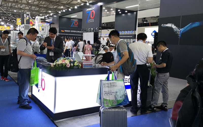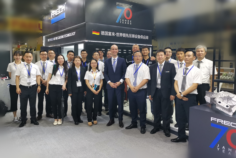 ![]() 富來參展團(tuán)隊 一年一度的壓鑄行業(yè)盛會—“2019中國壓鑄展”于7月19日圓滿落幕。本屆展會吸引18個國家和地區(qū)、450多家壓鑄產(chǎn)業(yè)鏈上下游企業(yè)參展,國際、國內(nèi)知名企業(yè)同臺競技,展示創(chuàng)新產(chǎn)品與技術(shù)。作為國際品牌企業(yè)代表之一——富來FRECH落座上海新國際博覽中心N1館核心區(qū)域N1A32展位,在210平米碩大展臺展示代表德國技術(shù)與品質(zhì)的冷、熱室壓鑄生產(chǎn)解決方案。