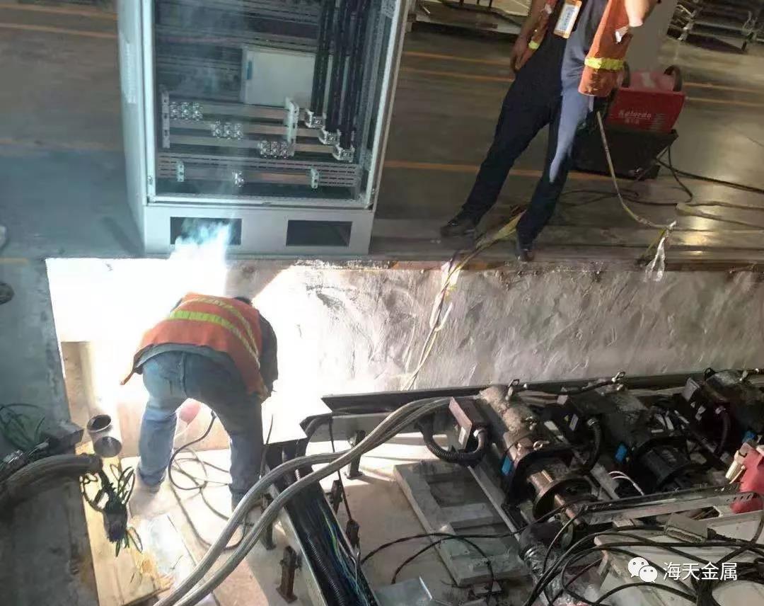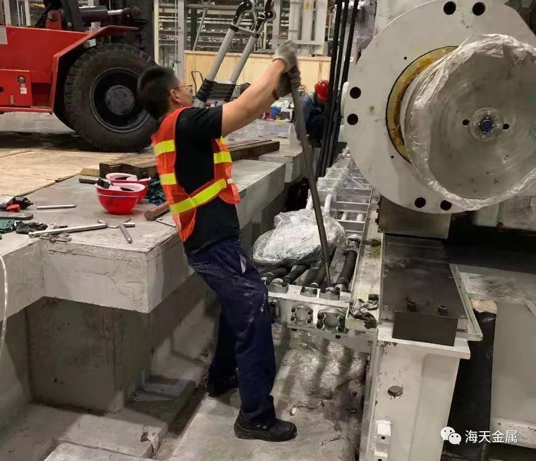 雙方工作人員安裝壓鑄機 美利信壓鑄集團常務副總裁馬名海先生在開機儀式上稱,HDC4500T壓鑄機是美利信壓鑄與海天金屬戰略合作的成果,是中國先進壓鑄技術的成果。
