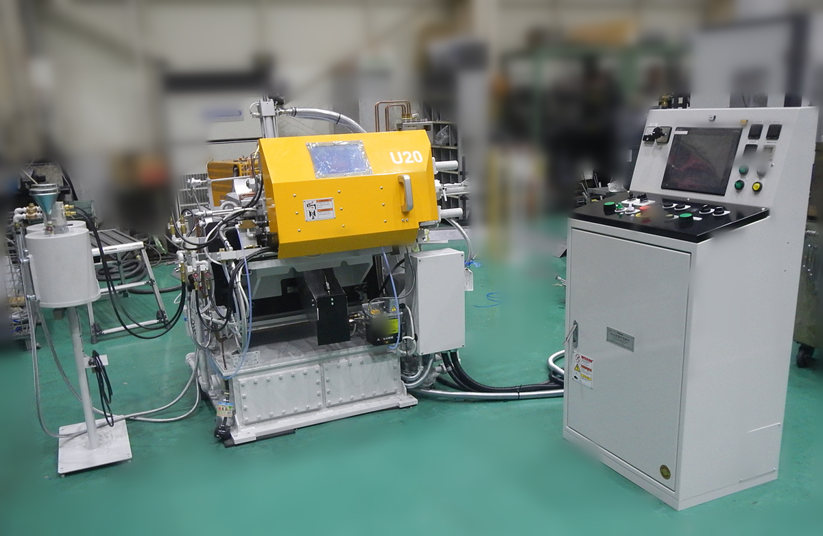 菱沼U20鋅合金熱室壓鑄機 本次展會,菱沼公司展示了一款分型面進料的 20T鋅合金熱室壓鑄機 U20,該機型使用的模具不用設置分流錐、可縮減開模行程。沒有分流錐可減低鑄件的卷氣問題,等同傳統25噸壓鑄機的鑄造能力。整合式機體節省了廠房的占地空間,大幅減少流道及排渣用量,能夠節省大量重熔材料。同時,該機型鑄件密度較傳統機器更為優良,生產周期也更短。 據介紹,U系列壓鑄機是菱沼公司根據中國市場開發的產品,主要針對高端客戶在光模塊、汽車用的傳輸連接件,電子器材內零配件及高精度要求及產品需求量大的鋅合金鑄件生產。