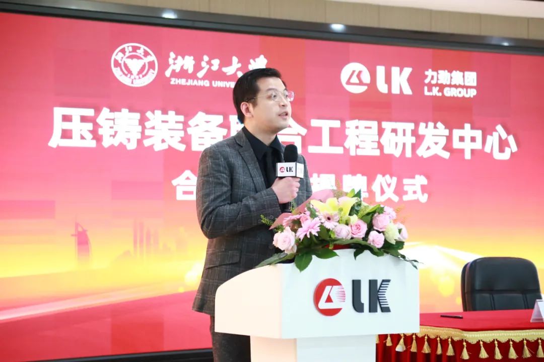 力勁集團CEO劉卓銘先生致辭 劉卓銘先生表示,浙江大學是馳名中外的“雙一流”高校,建校歷史超過120年。力勁與浙大合作多年,取得了眾多成果。現在再度攜手,共建壓鑄裝備聯合工程研發中心,共同致力當前國家急需的高端壓鑄智能裝備的研發與應用,提升國家制造業實力,深感榮幸。 “希望能夠在此次合作的基礎上,進一步推進產學研用一體化,創新驅動發展,為國家科技產業戰略發展目標的實現,為壓鑄產業發展,貢獻力量,創造價值。”