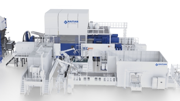 金屬HDC系列超大型壓鑄機(鎖模力>60000kN),以HDC8800為例整機重量超過700噸,配置領先的雙閉環全實時控制壓射技術,高效、強勁的三模板合模技術以及智能KEBA控制系統,可完美匹配復雜的一體化壓鑄成型工藝。目前,超過10臺海天金屬超大型壓鑄機已入駐客戶企業。