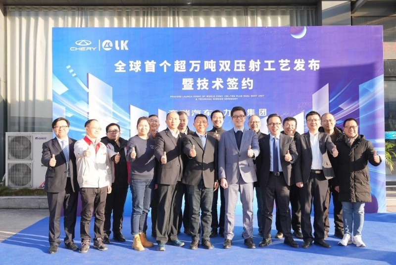 ![]() 簽約儀式 再次引領行業突破!12月23日,力勁集團與奇瑞汽車在安徽蕪湖聯合舉辦“全球首個超萬噸雙壓射成型工藝暨技術簽約儀式”,正式揭密雙壓射工藝與設備的技術原理及先進性。 本次發布的雙壓射技術,顧名思義就是由“單個鎖模機構+兩個平行布置的壓射系統”組成的一套壓射系統,這一技術創造性地解決了因填充最大距離限制所導致的一系列問題。隨著壓鑄噸位的不斷突破,超大一體壓鑄的集成化越來越高,壓鑄件體積越來越大,單壓射系統的局限性不斷凸顯。尤其是整車底盤一體化壓鑄成型的市場需求以及滑板底盤等先進理念的提出,對壓射工藝提出了更大的挑戰。在這樣的背景下,力勁集團與奇瑞汽車聯合開發了這套超萬噸雙壓射系統,成功解決了由此產生的一系列問題,更為未來更大的一體化壓鑄提供了無限可能。