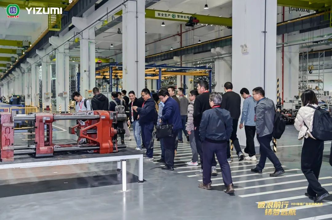 在伊之密領導及工作人員的指引下,嘉賓們先后參觀了伊之密高黎流水線車間、五沙數字化工廠、超重型壓鑄機廠房,詳細了解公司的發展歷程、研發實力、重型壓鑄機廠房的規劃建設能力和未來發展方向。