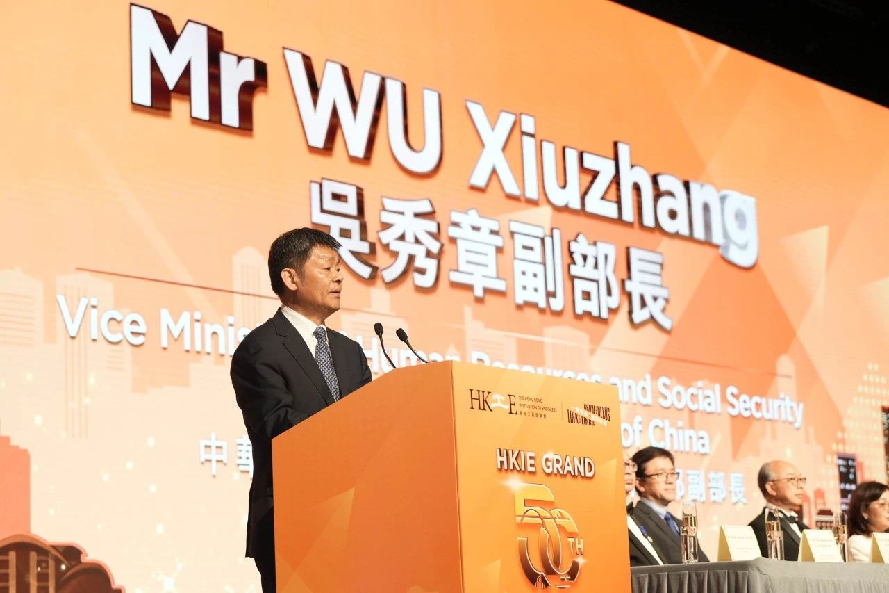 香港特別行政區現任行政長官李家超先生,人力資源和社會保障部黨組成員、副部長、中華全國總工會副主席(兼)吳秀章先生,香港工程師學會第五十屆會長馬紹祥先生出席大會并致辭。