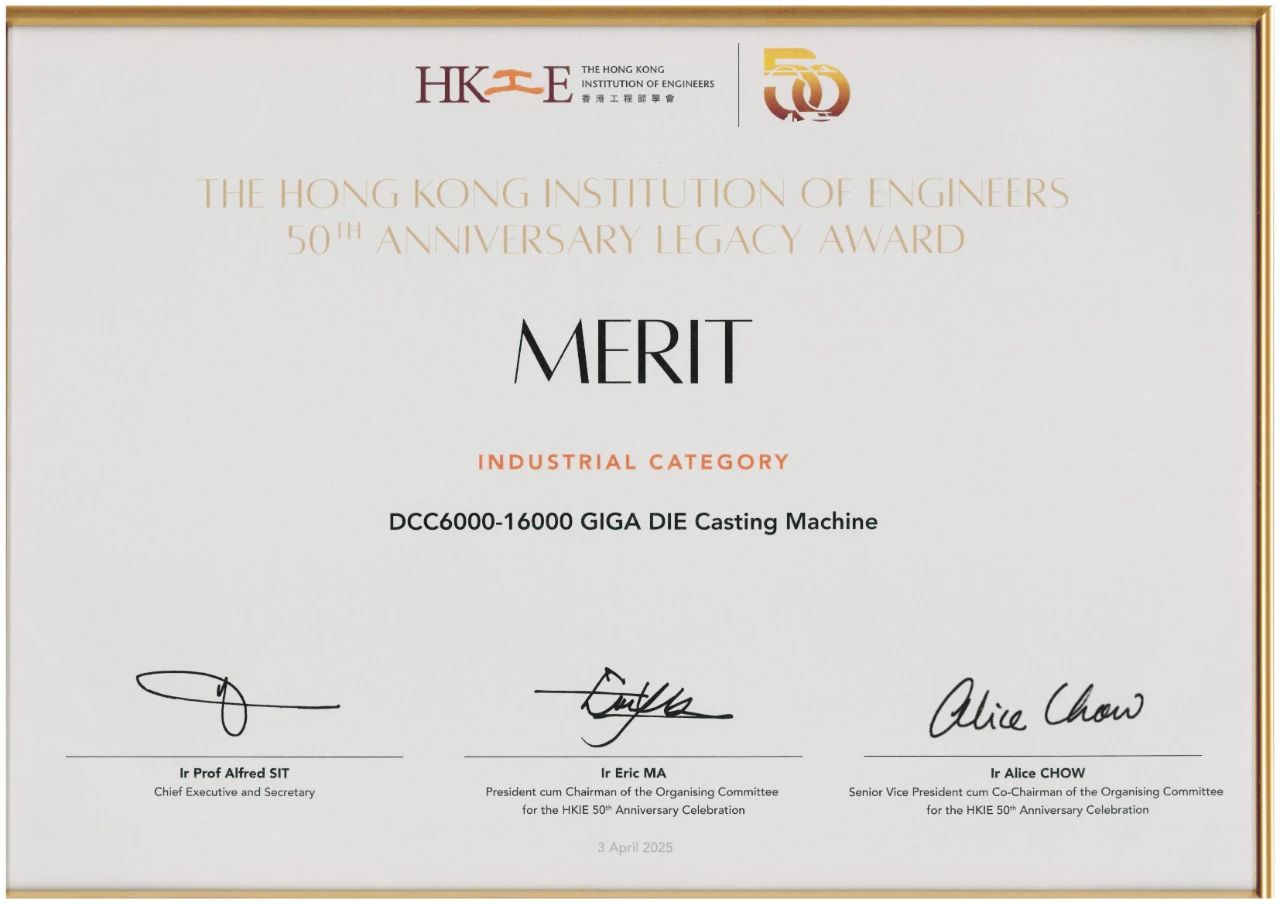 大會頒發了香港工程師學會(HKIE)50周年傳奇大獎。力勁DCC6000-DCC16000超大型壓鑄機榮獲“香港工程師學會50周年傳奇大獎——優異獎(工業類)”。