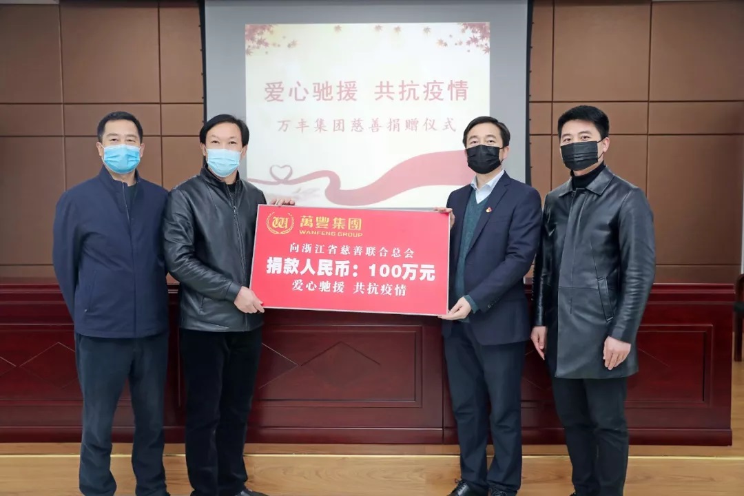 1月27日,萬豐集團向浙江省慈善聯合總會捐款100萬元,用于重點疫區的新型肺炎疫情防治。