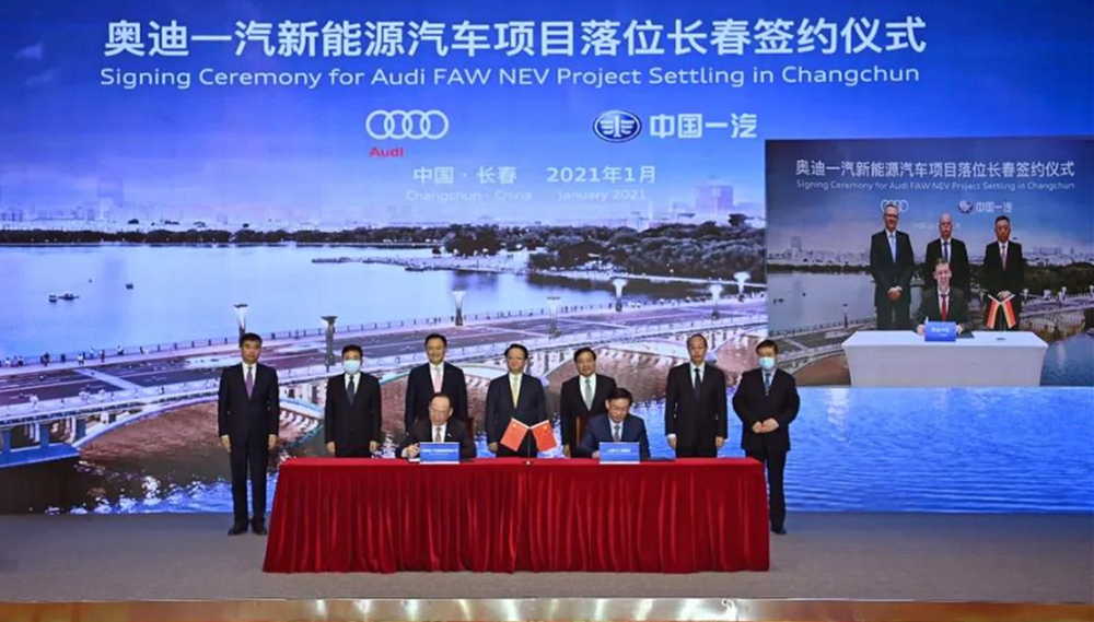 1月18日,中國第一汽車集團(tuán)有限公司與奧迪汽車股份公司、長(zhǎng)春市人民政府共同簽署協(xié)議,宣布奧迪一汽新能源合資項(xiàng)目落戶長(zhǎng)春。