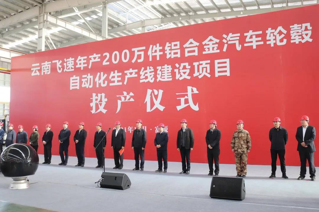 12月20日,云南飛速汽車輪轂制造有限公司建設的年產200萬件鋁合金汽車輪轂自動化生產線建設項目的投產儀式在云南富源工業園區項目現場舉行。